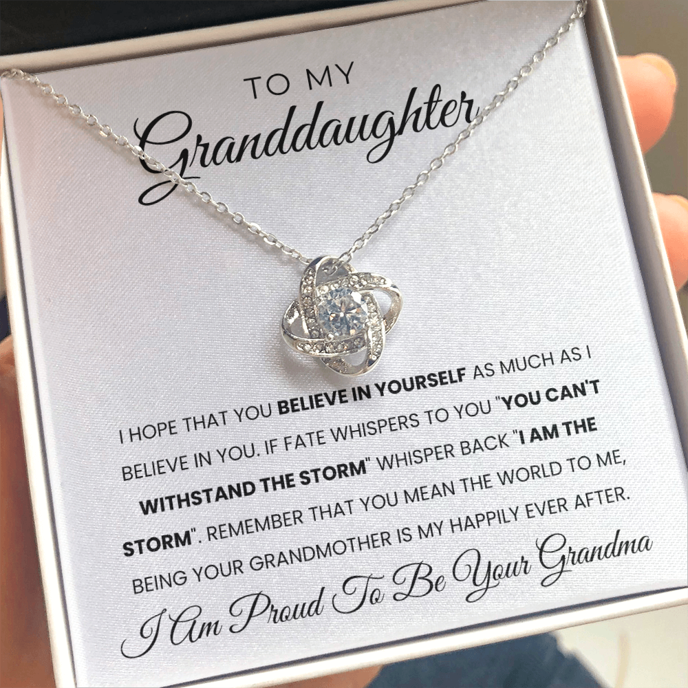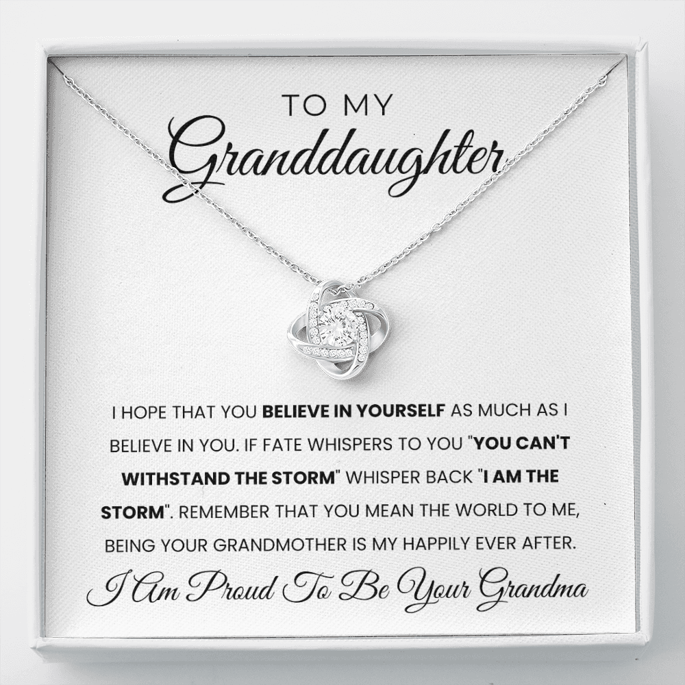 "I hope that you believe in yourself as much as I believe in you. If fate whispers to you "you can't withstand the storm" whisper back "I am the storm". Remember that you mean the world to me, being your grandmother is my happily ever after."
