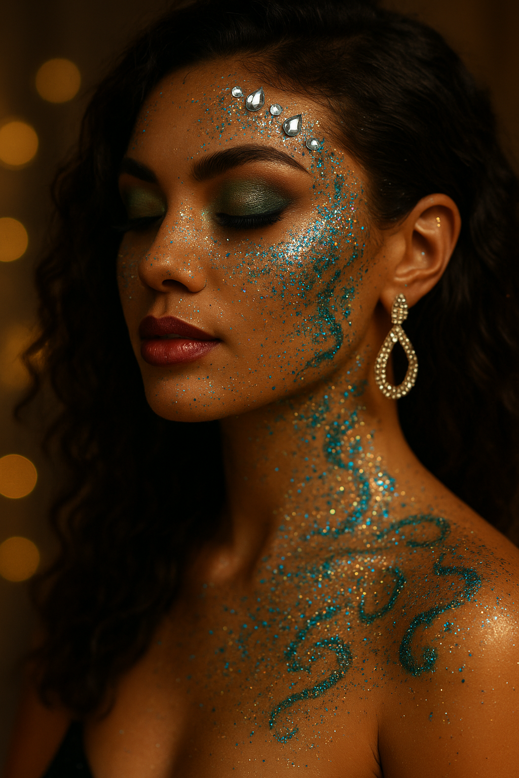 Our artists create glamorous designs on the face, neck, shoulders, arms, or other safe-to-glitter areas—perfect for photo-worthy moments.