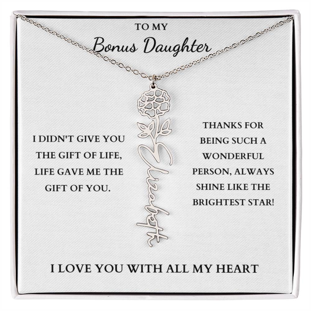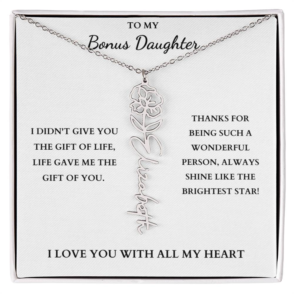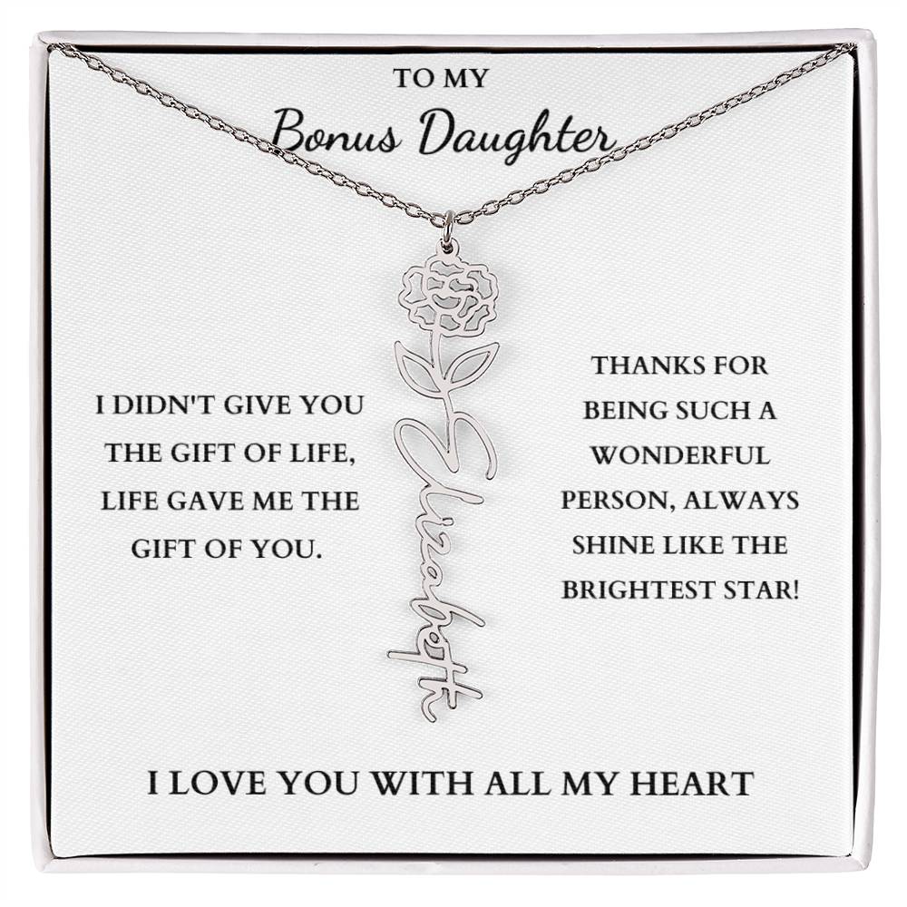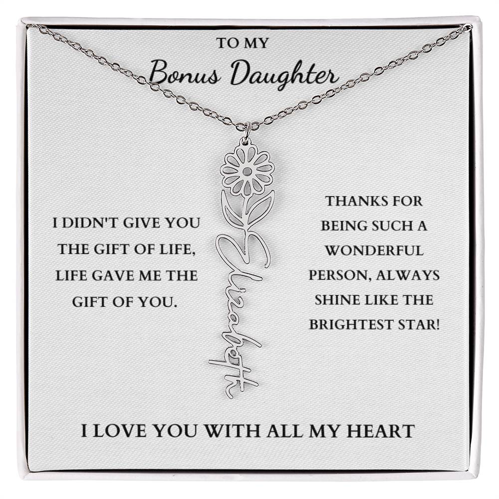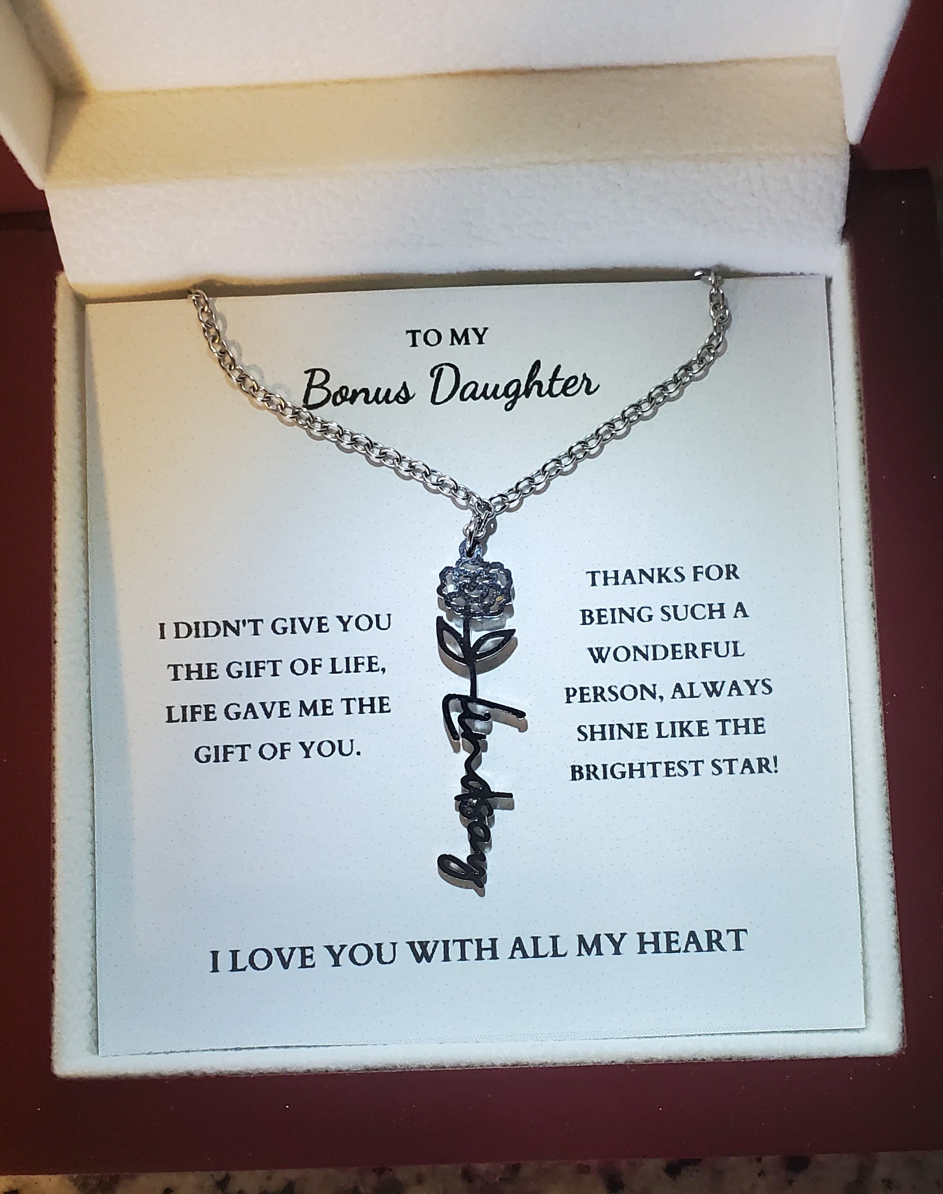 Can you imagine the look on your bonus daughter's face when she sees this beautiful personalized NAME necklace with her BIRTH FLOWER 🌻🌹