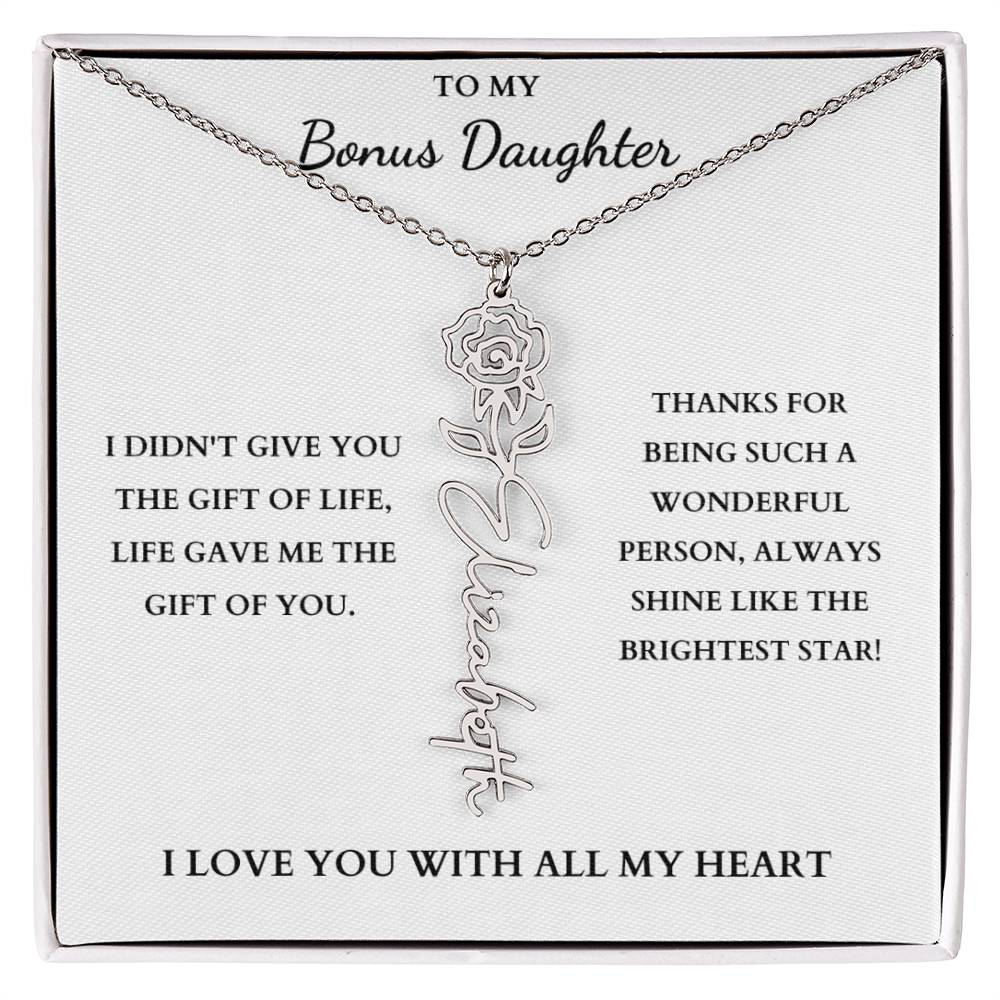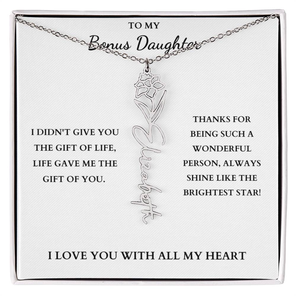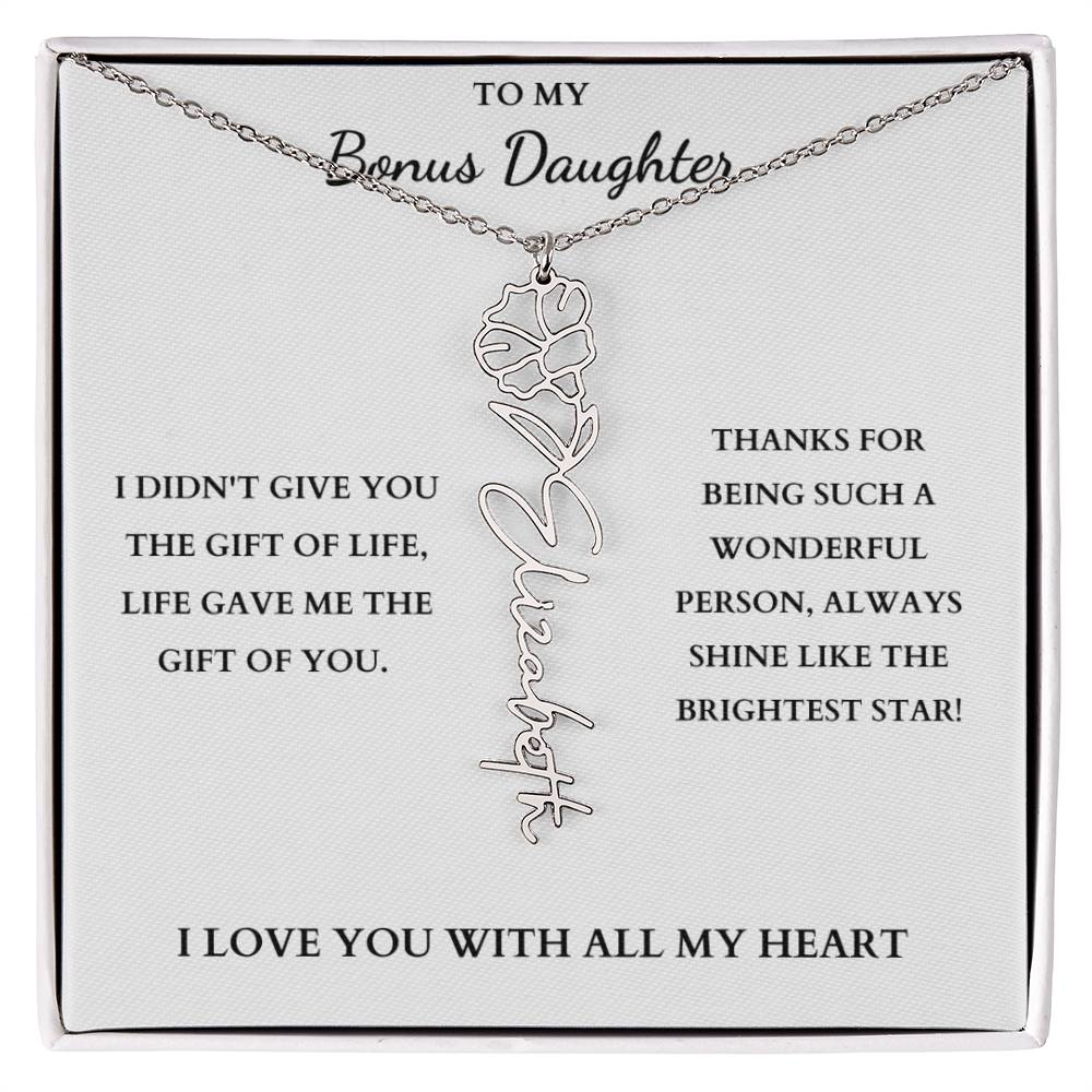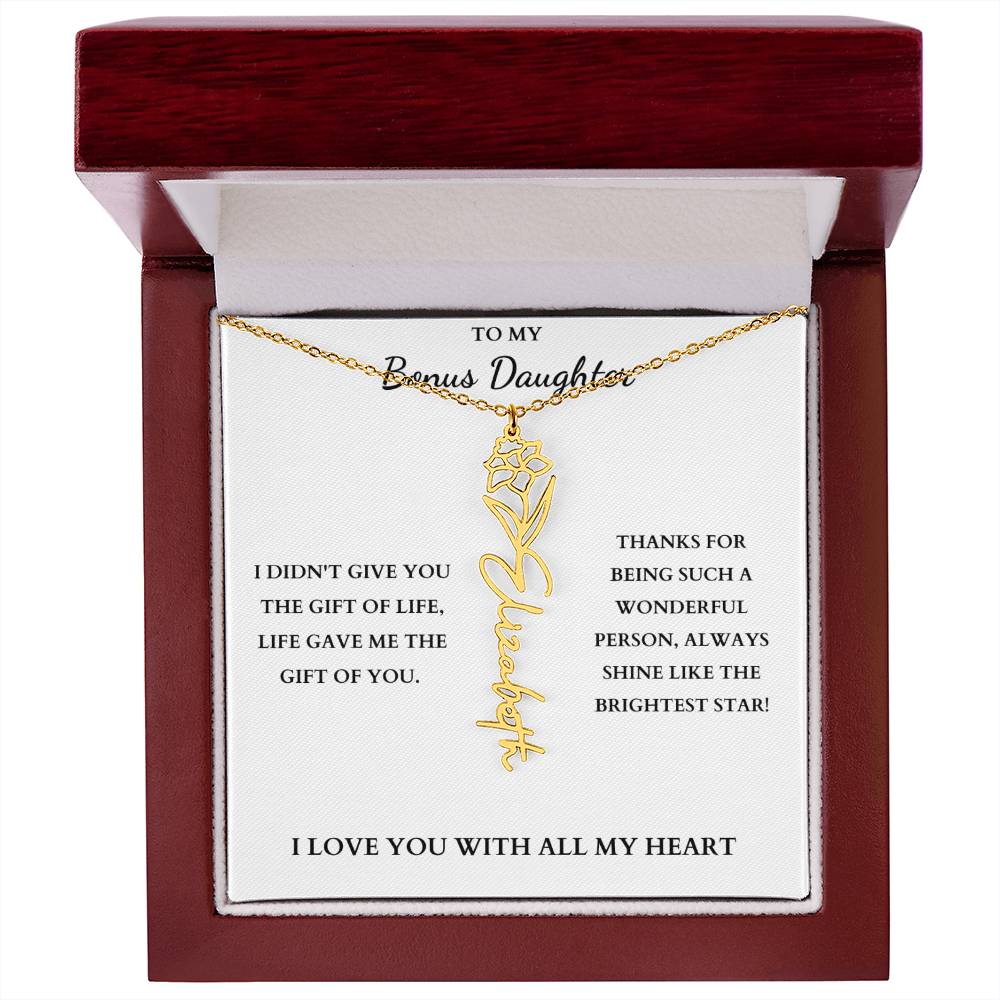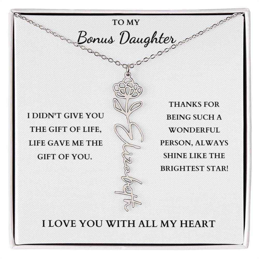Can you imagine the look on your bonus daughter's face when she sees this beautiful personalized NAME necklace with her BIRTH FLOWER 🌻🌹