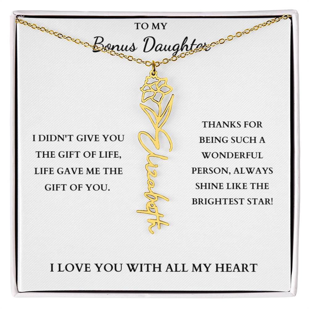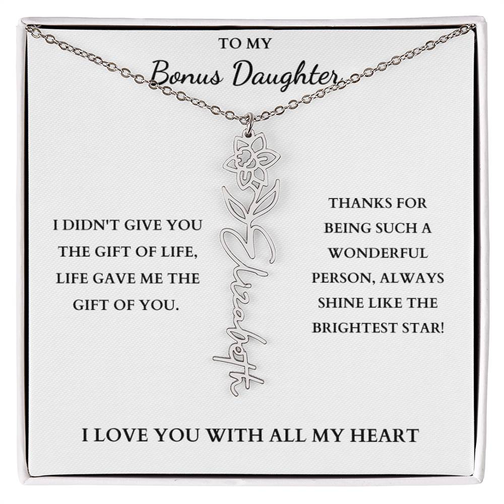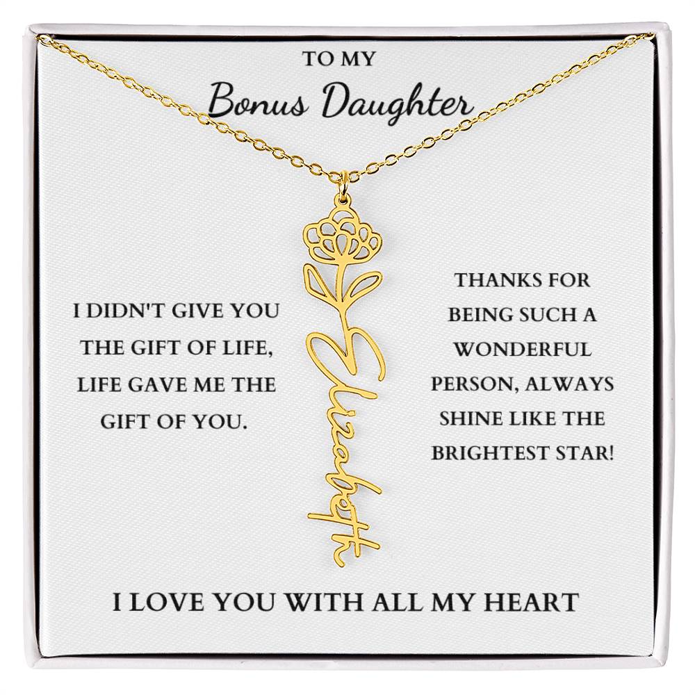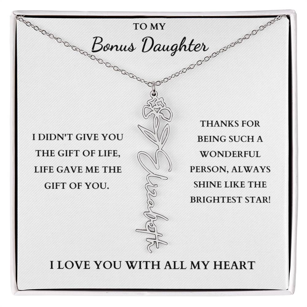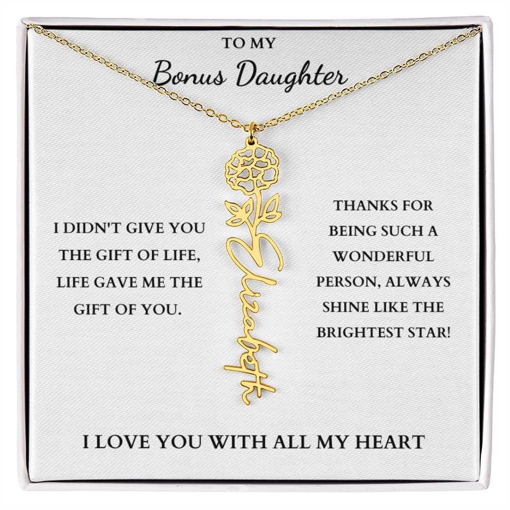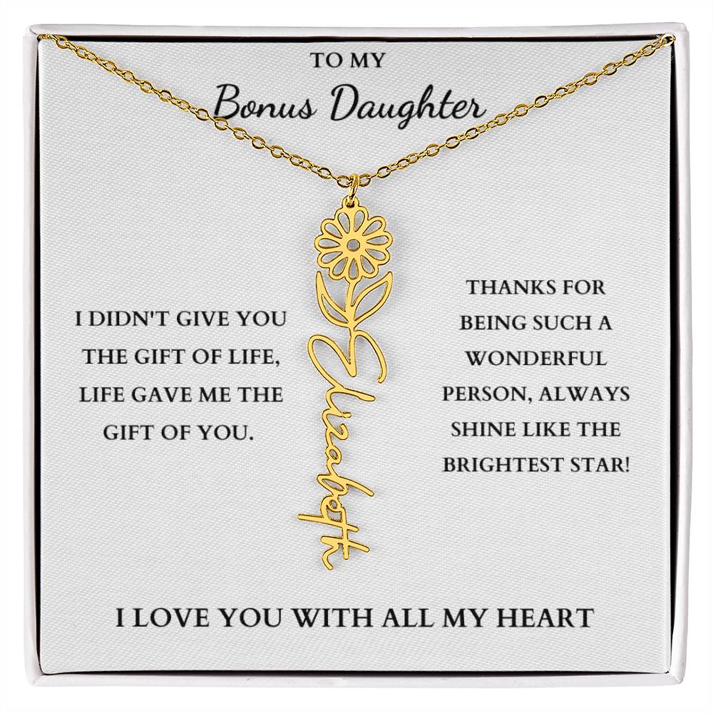 Can you imagine the look on your bonus daughter's face when she sees this beautiful personalized NAME necklace with her BIRTH FLOWER 🌻🌹
