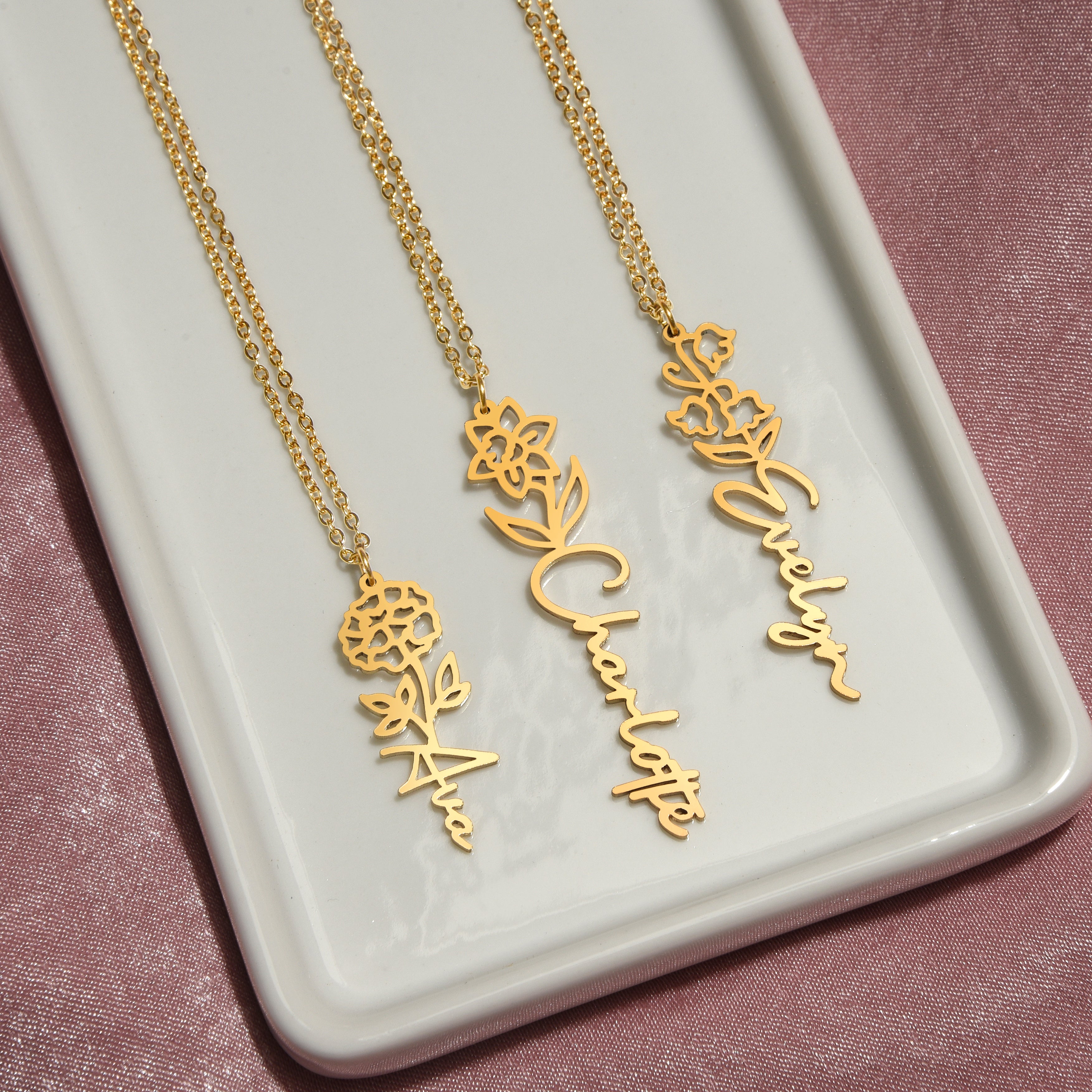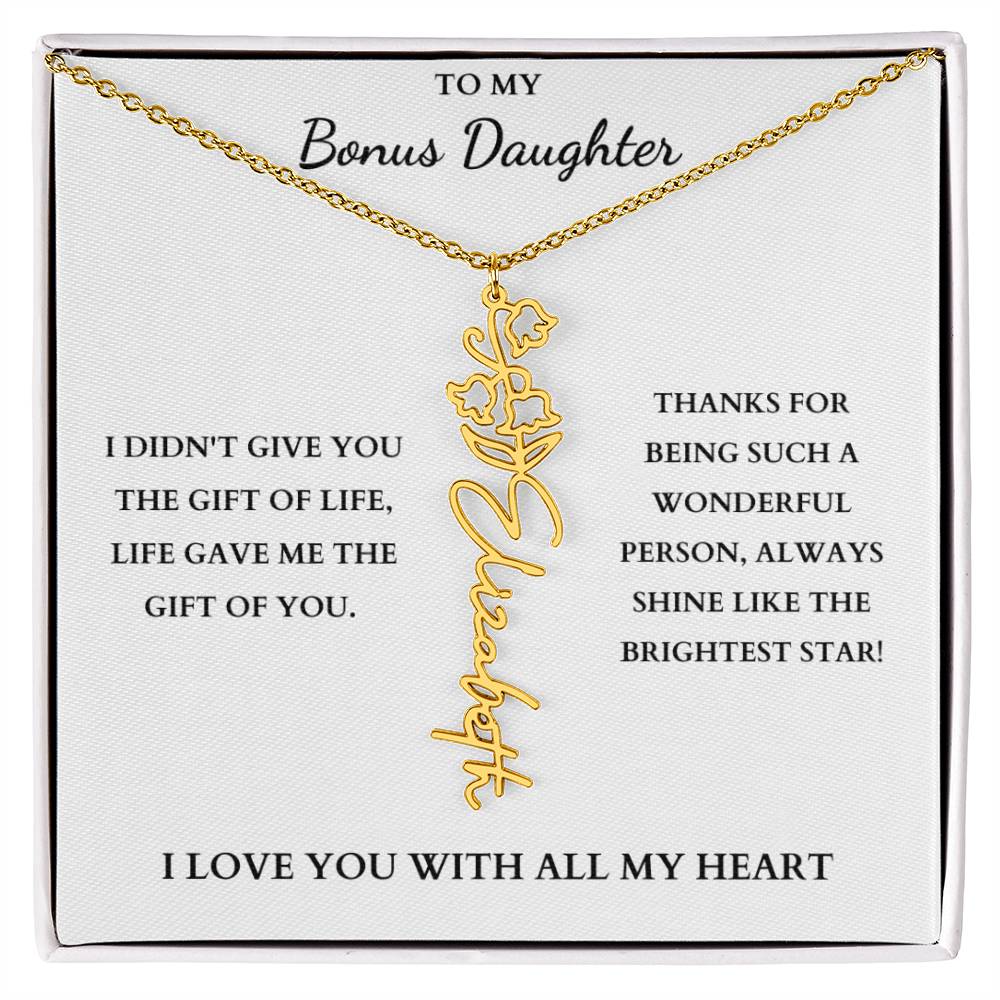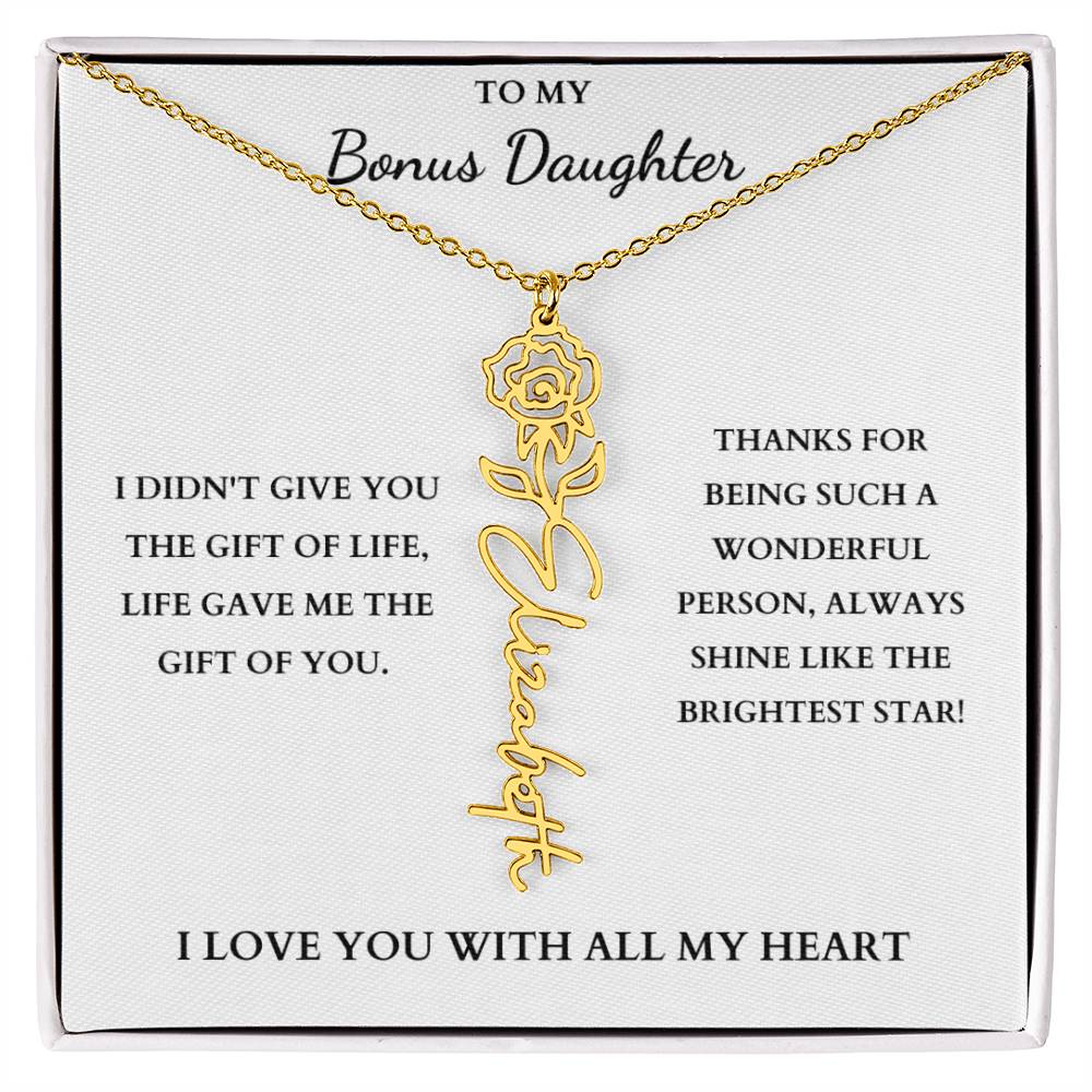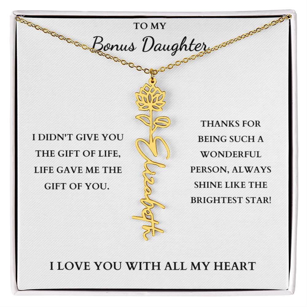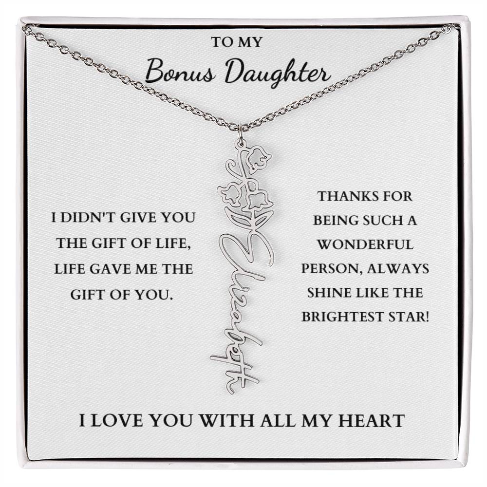 Can you imagine the look on your bonus daughter's face when she sees this beautiful personalized NAME necklace with her BIRTH FLOWER 🌻🌹